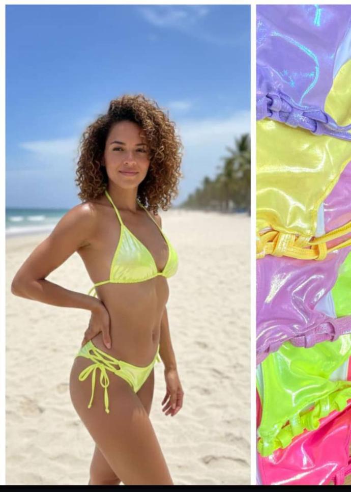 Por segundo lugar, tenemos esta clase de traje de baño satinados en tonos brillantes y pasteles; ideales para que disfrutes en la playa o piscina en estos carnavales y para esta elección Yarnabeth te ofrece su línea de hilos Sable 40/2 de 2500 yardas con el cual te aseguro que harán que tu traje de baño destaque entre muchos.